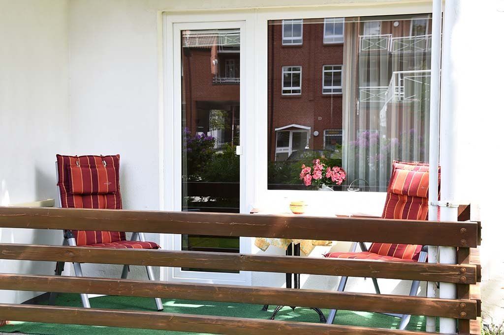 Bei gutem Wetter können Sie auf dem Balkon die Sonne genießen. Die entsprechende Ausstattung mit Gartenmöbeln ist in der Sommersaison in der Ferienwohnung vorhanden.