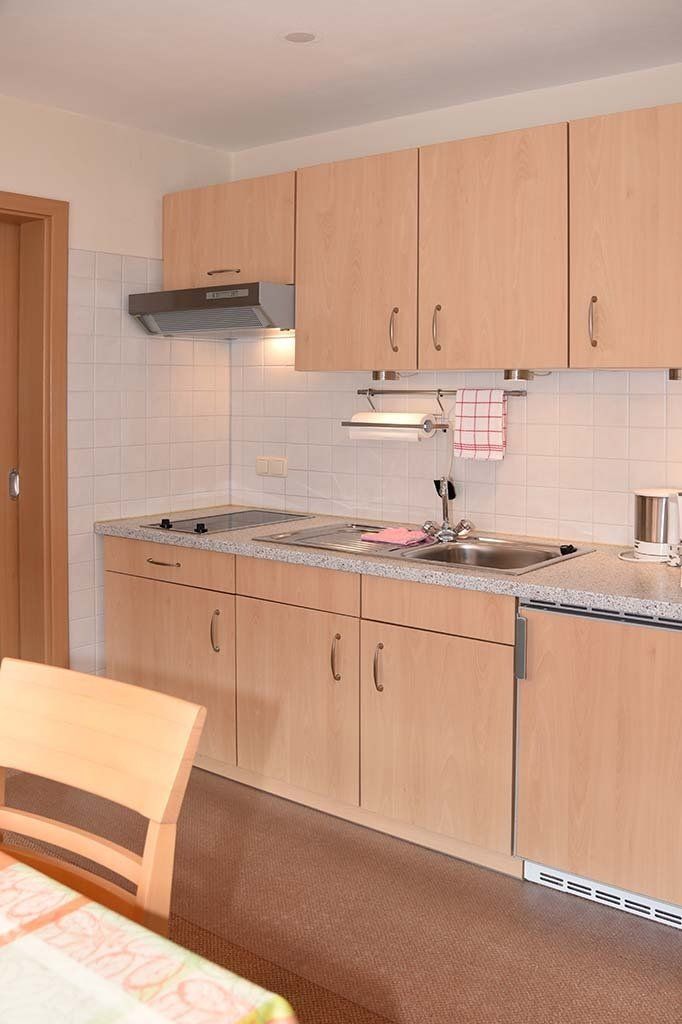 Wer im Urlaub nicht auf selbst zubereitetes Essen verzichten möchte, findet in der komplett eingerichteten Küche alle erforderlichen Geräte zum Kochen.